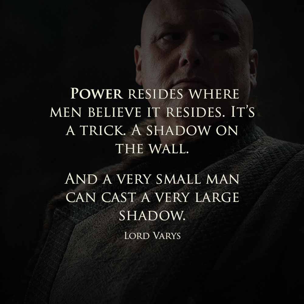 Varys said "power resides where men believe it resides." That's why Bin Laden attacked the World Trade Center, the Pentagon, and narrowly missed the Capitol. He attacked American financial, military, and political power right where it lives. And two out of three, he hit.