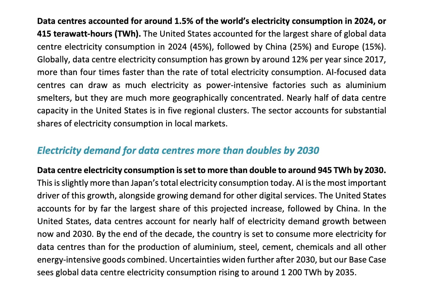 AI now uses as much energy as Saudi Arabia (415 TWh), which is the last thing we should be adding to the world. By 2030 it will use as much energy as Japan (945 TWh) not because it has to, but because it can. Because (White) AI is a fucking scam. In fact, we shouldn't be wasting any resources on AI during a wholesale resource collapse, but if you bring that up, uh... scram. Instead of Noah's Ark we get ARK Investments, somehow losing money on a Ponzi scheme and calling it a plan.
