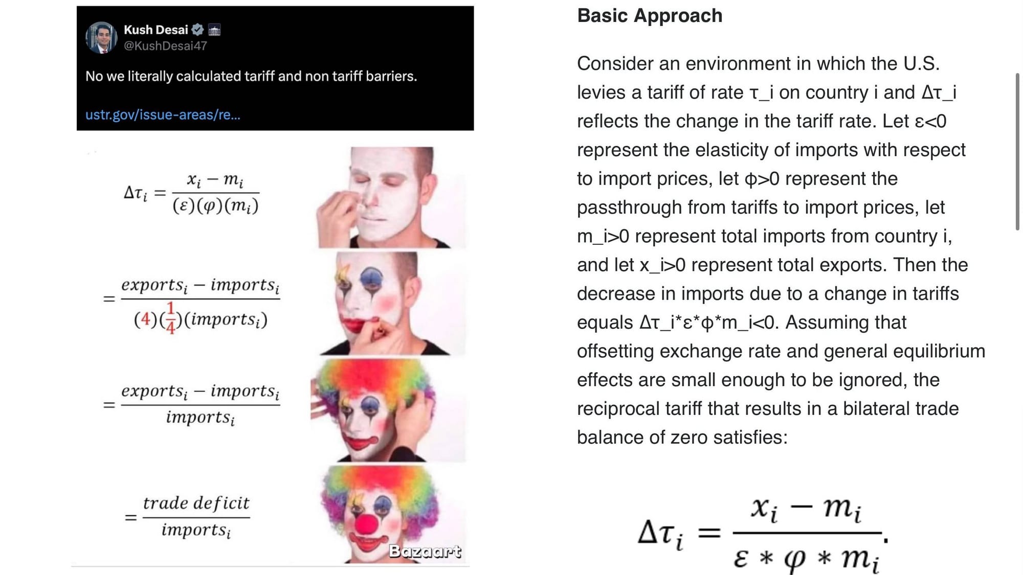 The funny thing is that Russia is not being tariffed and China (preparing for this day over decades) can retaliate securely. Loyal (and poor) countries in the Global South bear the brunt of Trump's ChatGPT tariff policy, which has just taken top-level internet domains, imposing a minimum of 10% tariffs on largely unoccupied islands and tariffs of roughly half the trade deficit of other countries. Under the trade system they built, however, we were supposed to give them cheap goods and labor, in exchange for tokens (USD) they pulled out they ass. It's like a system of magic beans run by American bean-counters. They get real goods and labor, we get funny money. Neo-colonized countries are supposed to run a trade deficit and hold and use USD amongst ourselves, like coolies on a company farm. This is what makes the US dollar a reserve currency.