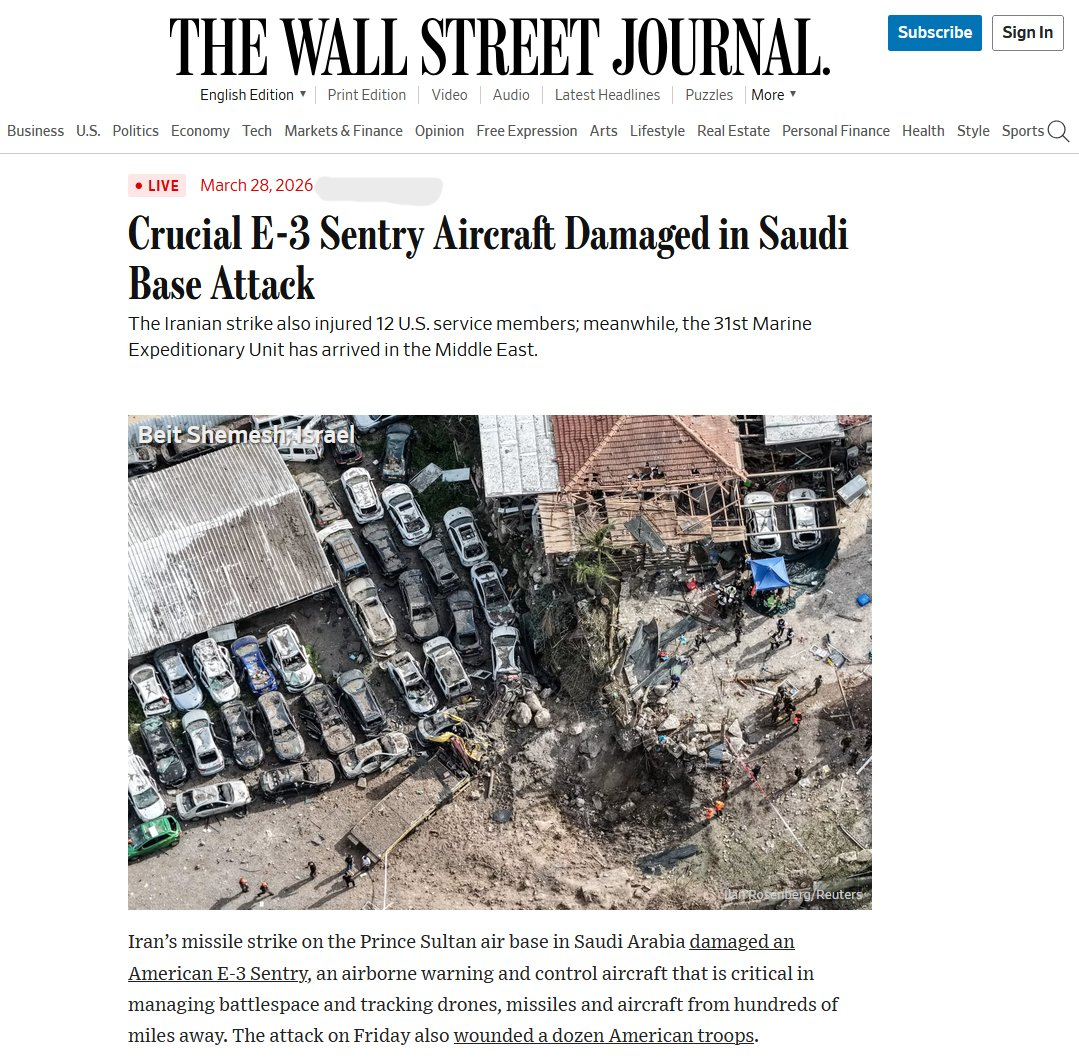 In the bigotry of low expectations, people say Iran's hits required Russian or Chinese intelligence, but you can find these dumb-assets on Google Maps. US bases are sore spots in the desert, visible from high ground Iran holds without much effort. The real innovation has been the rocket science of Iran hitting radomes with surgical precision. If you look at the whacking of the AWACS, they hit that plane right in the radar and nowhere else. This is liking Ulysses getting the cyclops right in the eye, and then it didn't matter how big he was. Iran blinded the White Empire all across the Gulf and is now blinding Jordan and Saudi. In another month the Empire will be hiding in Romania, which Iran can still reach, so keep running. The Nazis will have to go all the way back to Germany, and finally to the United States that inspired them.