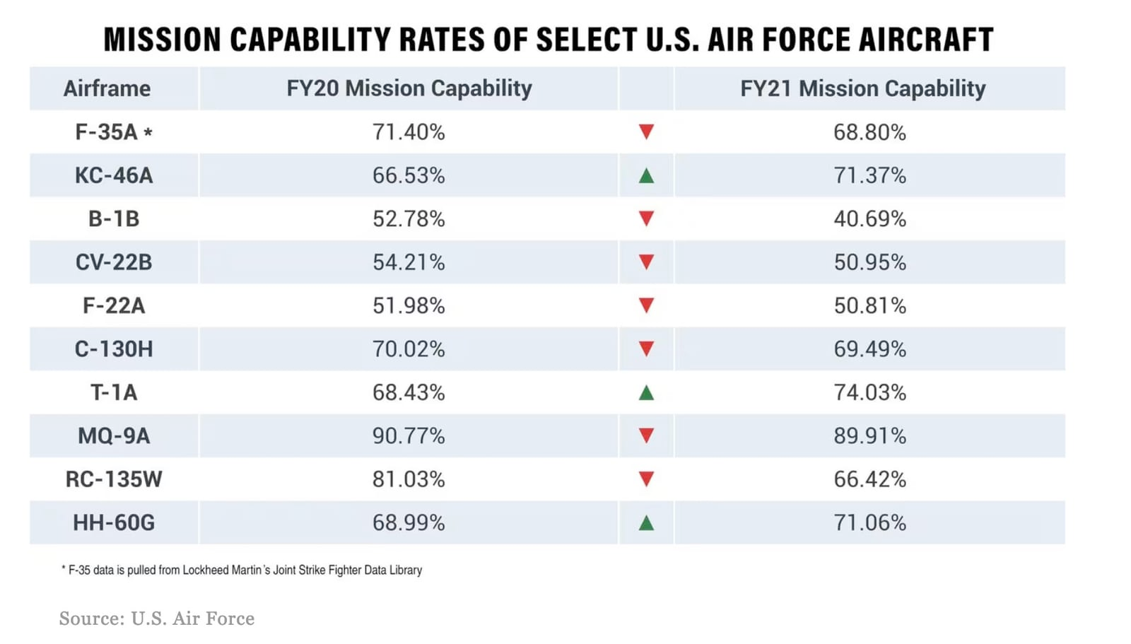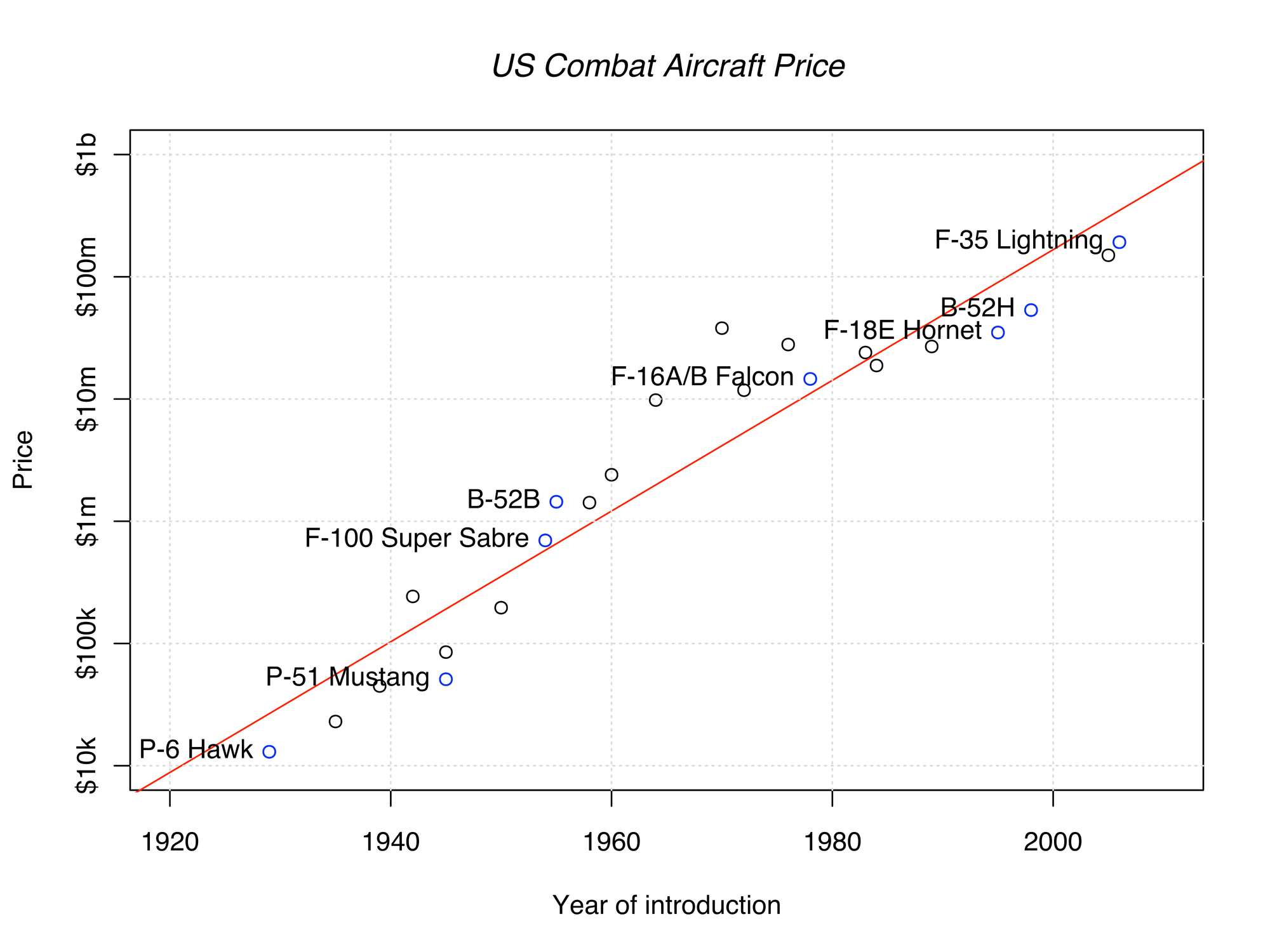 The cost of US aircraft has scaled exponentially while their capacity has decreased. These planes are unreliable in the best of times, and during wartime they have suicidal tendencies. If you look at the current cost and mission capability rates of US warplanes, they're ahead of schedule in this one thing, their ‘rapid, unscheduled disassembly’.