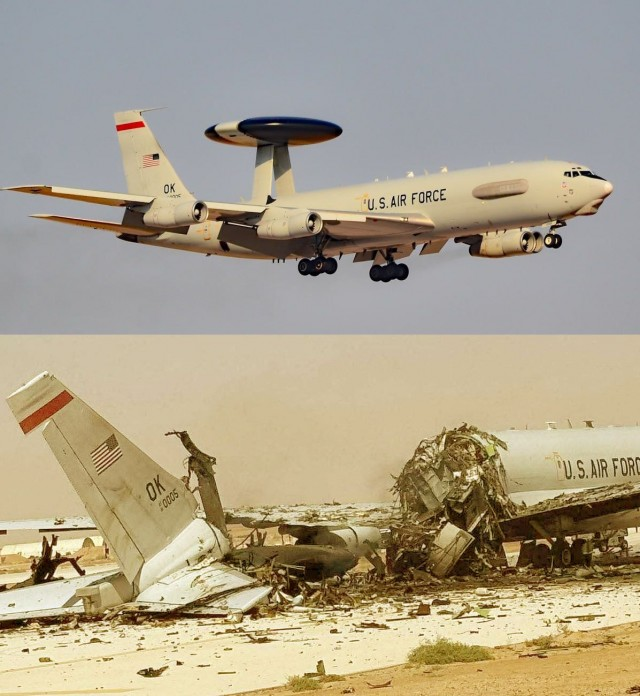 Just look at the shattered ‘pedestal’ of the 50-year-old E-3 AWACS (Airborne Warning and Control System) and let me read Shelley over its grave situation,