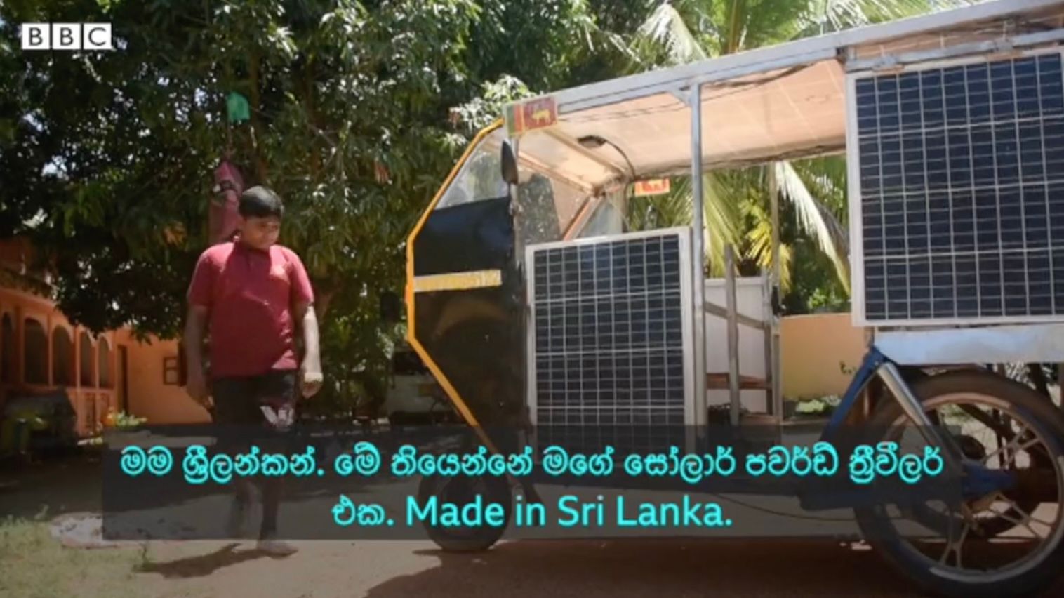 This kid Sunderalingam Piranavan is more innovative than Elon Musk because he's figured out how to move a person with solar power without stuffing them into a 3000 kg battering-ram of steel. What he's done here is modified a classic form of Asian transport, the tuk-tuk, by making it completely solar powered. At a commercial level, these vehicles have already been made electric at scale by Mahindra: