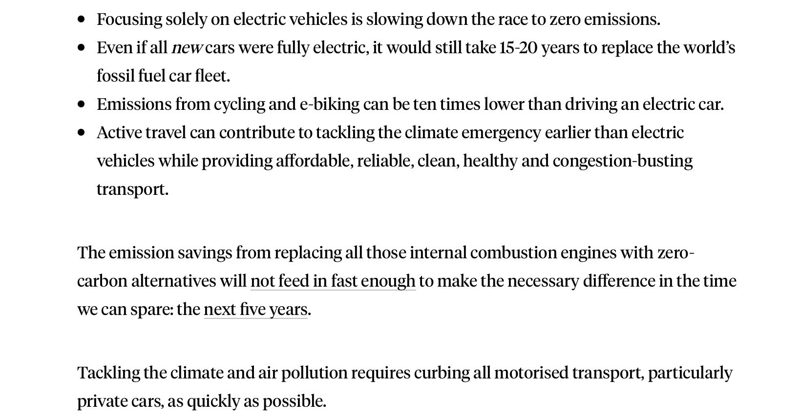 As these dudes at Oxford say, the focus on electric cars is actually slowing the fight against climate change. It's really as if dinosaurs are debating mullets vs. bangs while the meteor has already made them completely redundant.