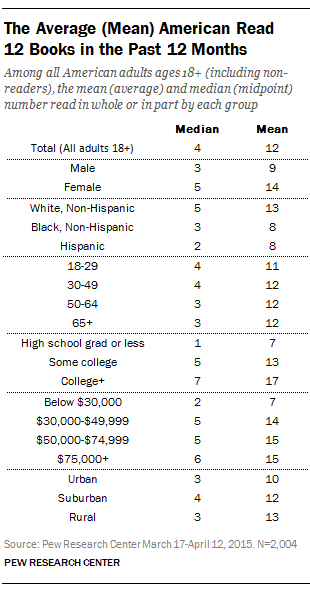 The fact is that there are real differences in income and reading. Someone earning $30k reads 7 books a year compared to 15 for the wealthy. The difference is even bigger based on education, people with a high school diploma read 7 compared to 17 for higher graduates. But then you have to ask another question.