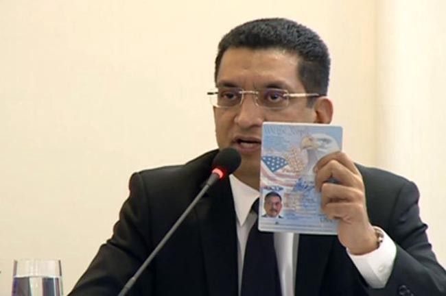 This is his lawyer and last Muslim against the wall Ali Sabry. He is holding up Gotabaya Rajapaksa’s US Passport.