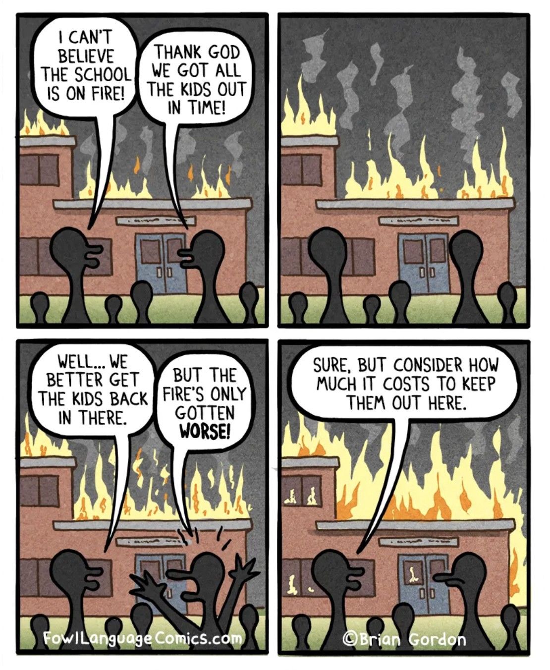 The whole country is a chain gang now, it’s just an endless chain of transmission, mutation, and their leadership doesn’t give a fuck. The elites are double, triple, quadruple-shotted up. They get on TV from remote locations and yell at teachers to shut up about safety or quit. Elites have testing, masks, and the growing investments to sit on at home. Everyone else can eat shit.
