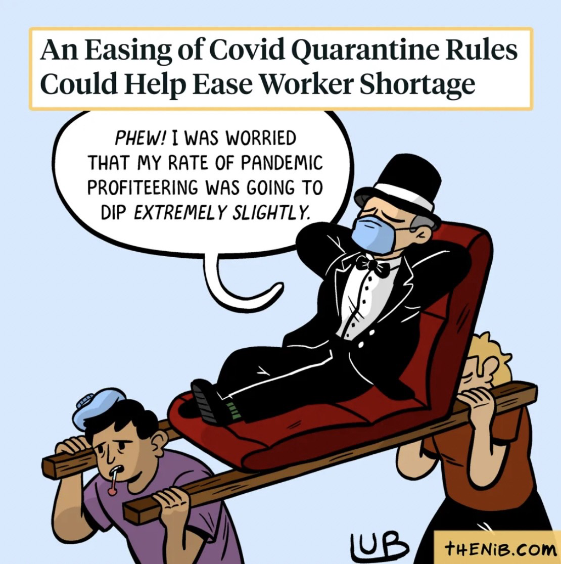America has been having at least a million cases every day and their rulers don’t care as long as millionaires’ stock portfolios are going up. They push the narrative that COVID is mild (it’s not mild!) ignoring the fact that they are brewing up a hot batch of god knows what variants now. What do they care? It’s more monopoly vaccines to sell! More monopoly money!