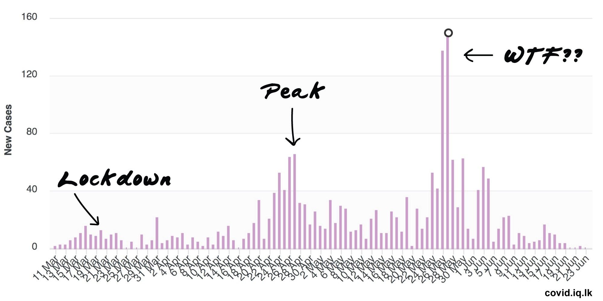 For a long time, Sri Lanka only had one case, imported from China on January 27th. She was tested, treated, recovered. Getting out, she basically had a wedding with the Minister of Health and DG of Health Services. This was, in hindsight incorrect, but sweet. We never blamed China or the WHO, we just worked with them and saved our own asses.