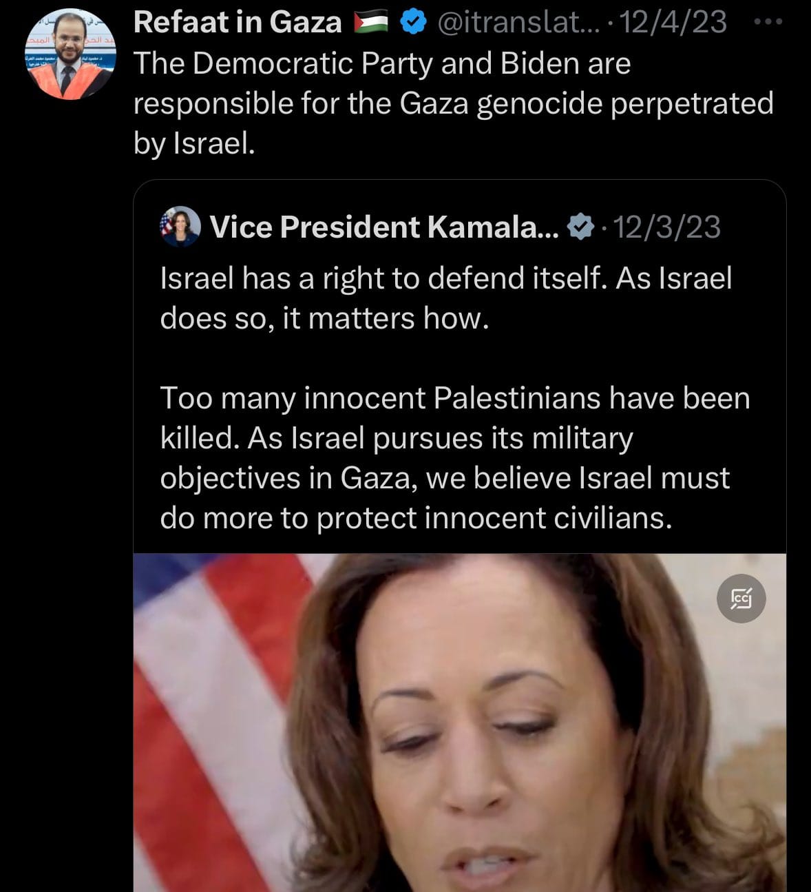 DEI is not some new imperial invention. White Empire has always been a Ponzi scheme, so they've always needed new suckers. And all empires need new blood to do the blood-letting, they all start from city-states and expand the definition of citizen over time, especially for military service. Just ask the 'Black' Roman Emperor Septimius Severus, who didn't earn his name by being nice. Today a Tamil/Jamaican woman is vying to be the last Emperor of White Empire, while committing war crimes. She's in all the meetings, she's on all the emails, she is guilty of exterminating, starving, torturing and raping Palestinians. Refaat's Al Areer's last words were condemning Kamala Harris by retweet. She is responsible for sending a guided missile through his window, killing him, his brother, sister, and four of his little nieces.