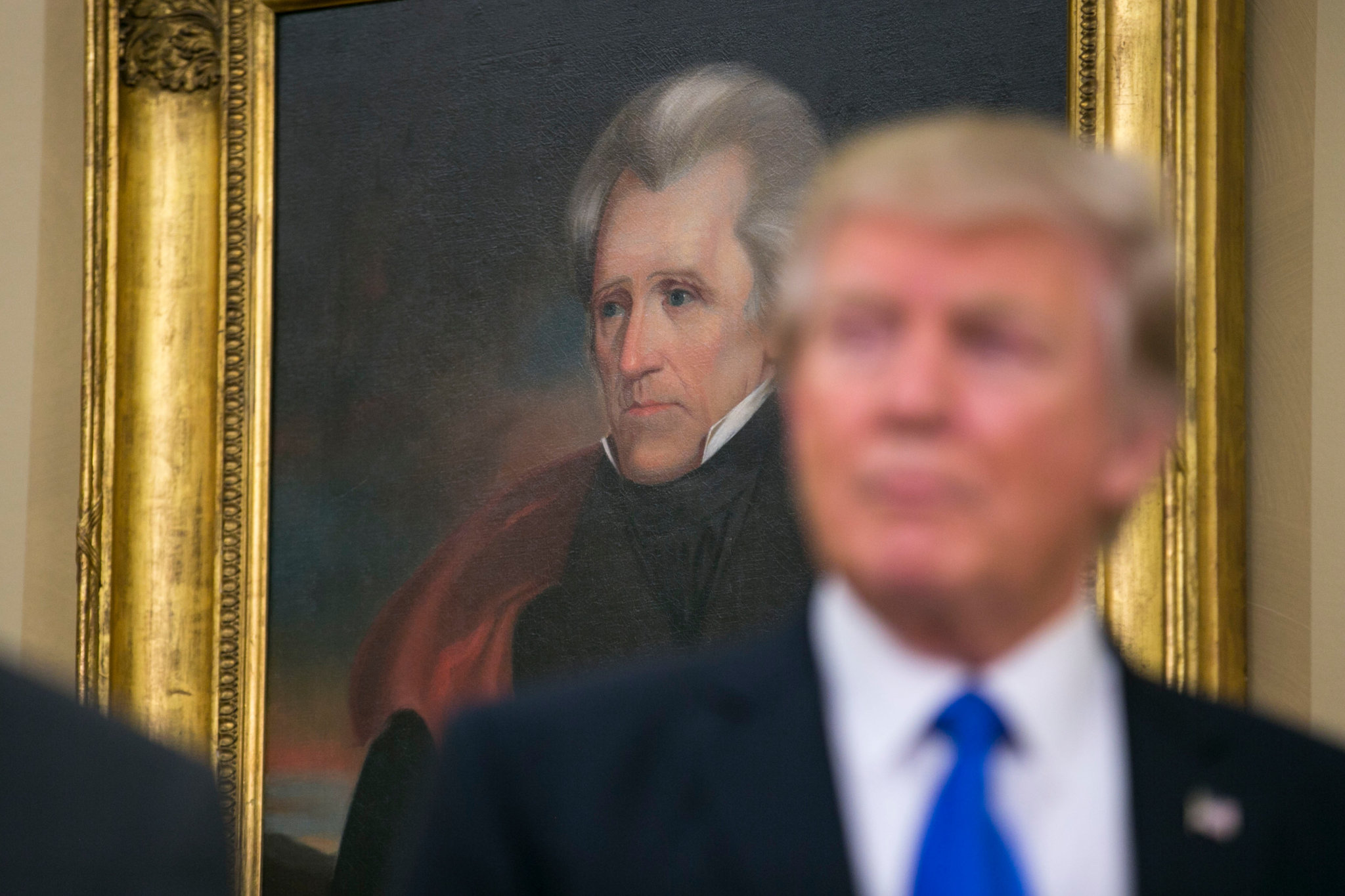 Like Andrew Jackson, Trump is making an example of people, and he wants you to know. This is not some black mark in American history, it's just another proud billboard on Route 666, their own highway to hell. Like Jackson's Trail Of Tears, Donald Trump is not ashamed, a bloody trail is the message he wants to communicate. American borders have always been drawn in blood, a razor across the face of a free continent. The business of America has always been displacement and exploitation, and Trump, while a bad businessman, is an excellent marketer.