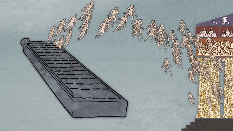 Original, Athenian democracy was not like this. Most people were deemed non-citizens, but if you were a citizen you had actual power. Because you actually held office. They used sortition for most posts — literally drawing lots. We should try this. How could it be worse?