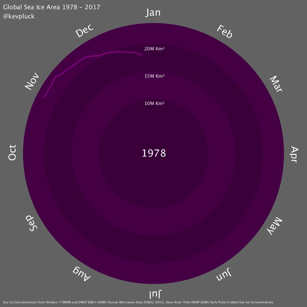 Ice melts slowly and then it starts falling off in chunks, as it already has. Entire sheets of the polar ice sheets are falling into the ocean, tonnes and tonnes at a time. Just as we are constantly setting new maximums for temperature, we are setting new minimums for sea ice.