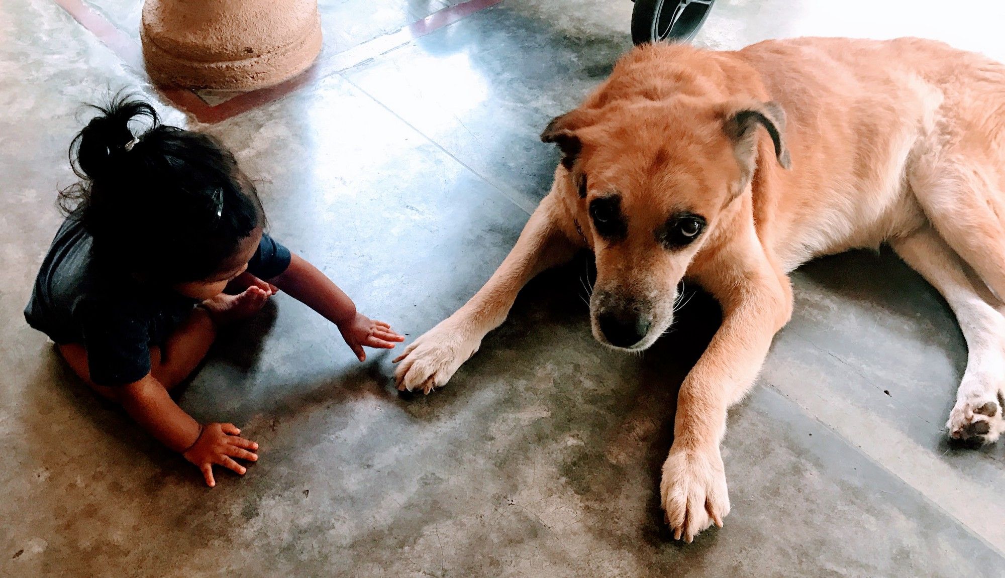 My daughter was there when our dog died. I was holding his still warm body, tears in my eyes, when she toddled in. It was his time, but I wasn’t sure if she would understand. What she would understand. But she was just curious. She just wanted to come closer.