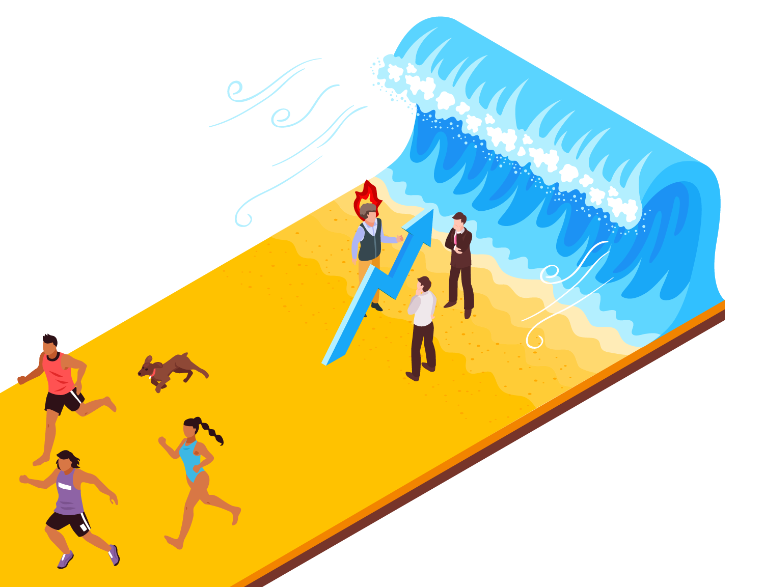 Predictably, the tsunami comes and they find themselves underwater. Deeply confused, they ask: