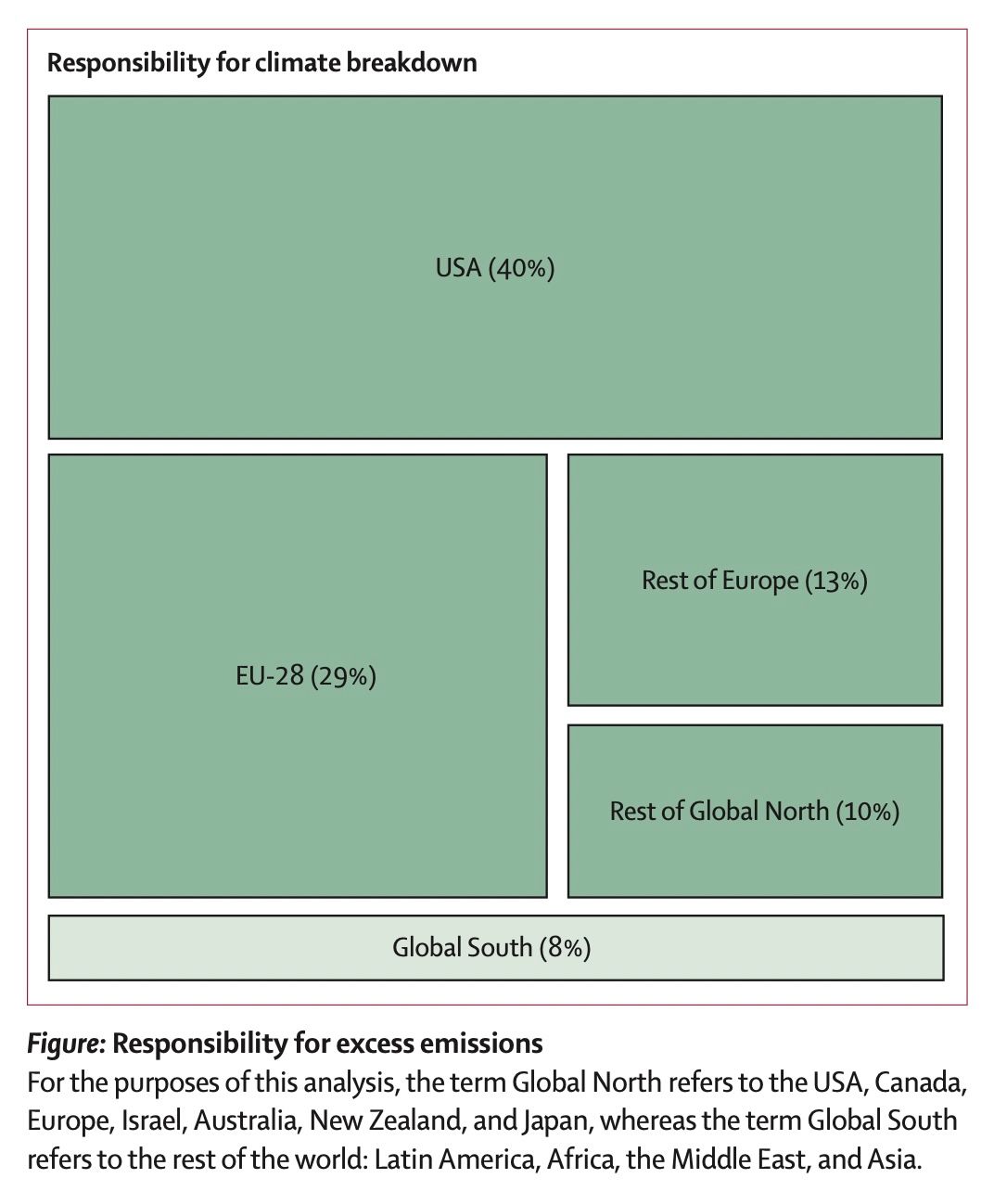 Over 80% of the responsibility for climate breakdown lies with the US and Europe. Over 90% is with what people call the 'Global North', but as it includes Australia, I'll just call them the global white supremacist minority. For short, 'these assholes'. These assholes were founded on the exploitation of land and people and they have not changed. Their colonial empires spread with massive deforestation, mining, killing and skinning animals, enslaving human beings, shipping, digging, consuming, more, more, more.