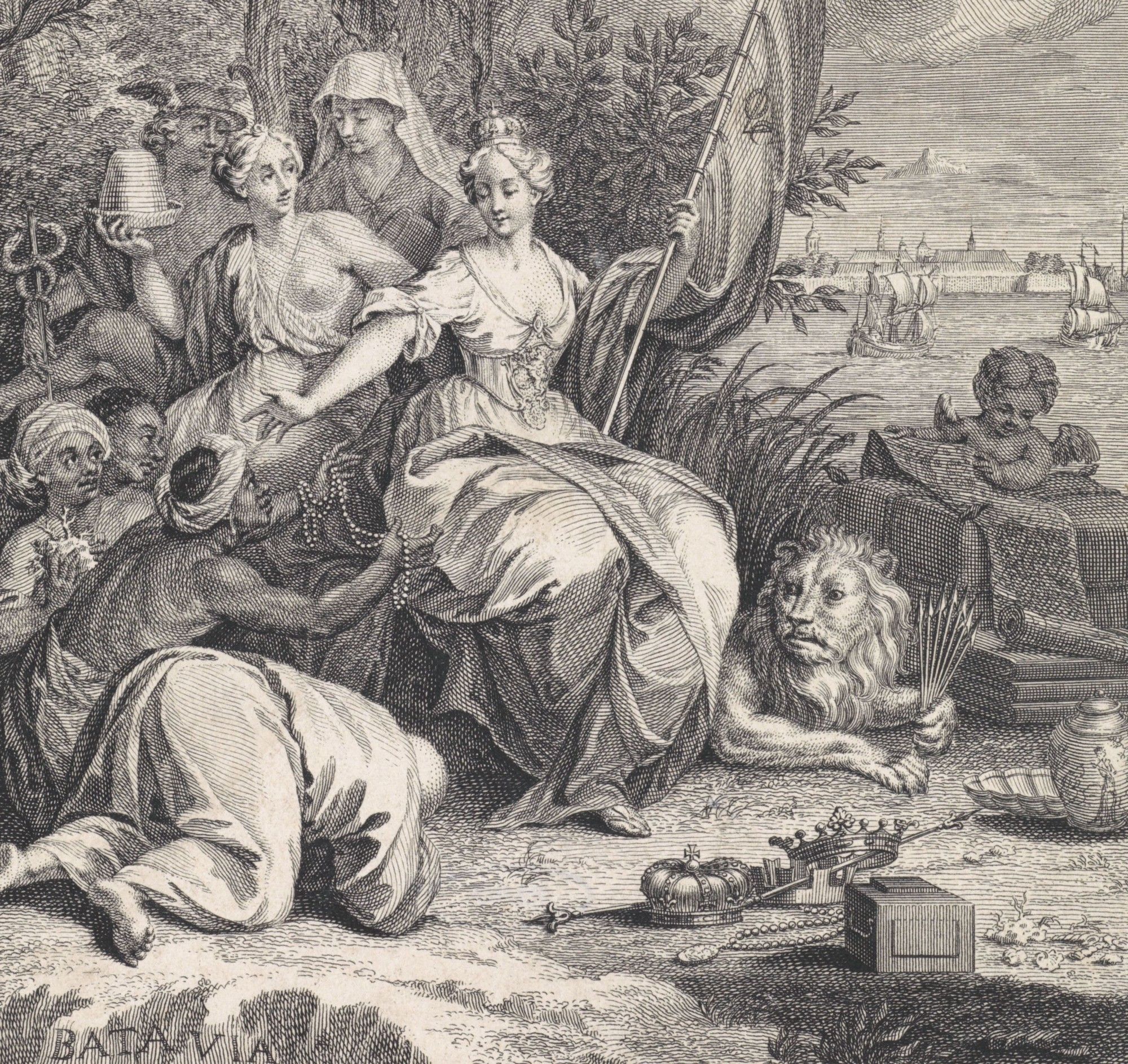 She was often depicted this way — as a Queen — and this was not just propaganda. The VoC was a legal person. This was in fact the best way of visualizing reality. To the colonized she was as real and cruel as Queen Victoria would be.