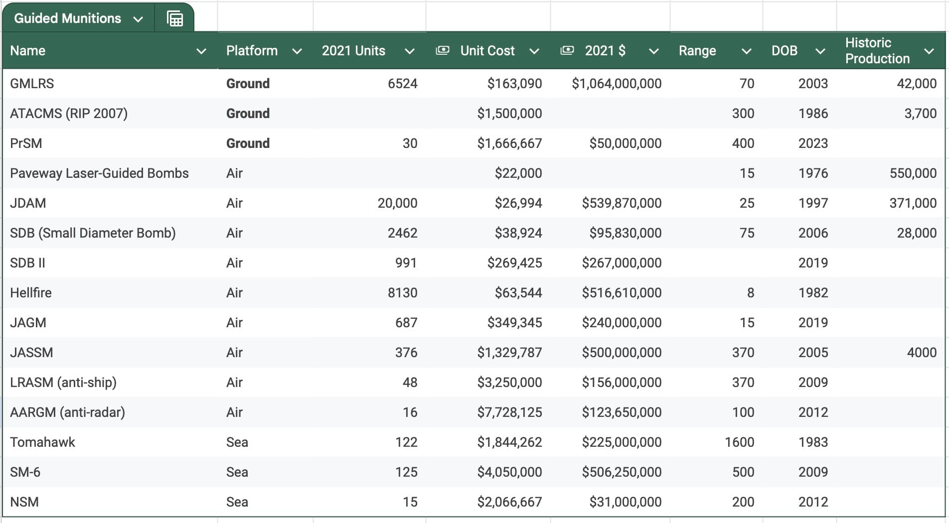 Genocidin' Joe Biden said show me your budget and I'll show you your priorities. This budget is from the Precision-Guided Munitions: Background (put in one table by me). It's a bit detailed, but it shows the problem.