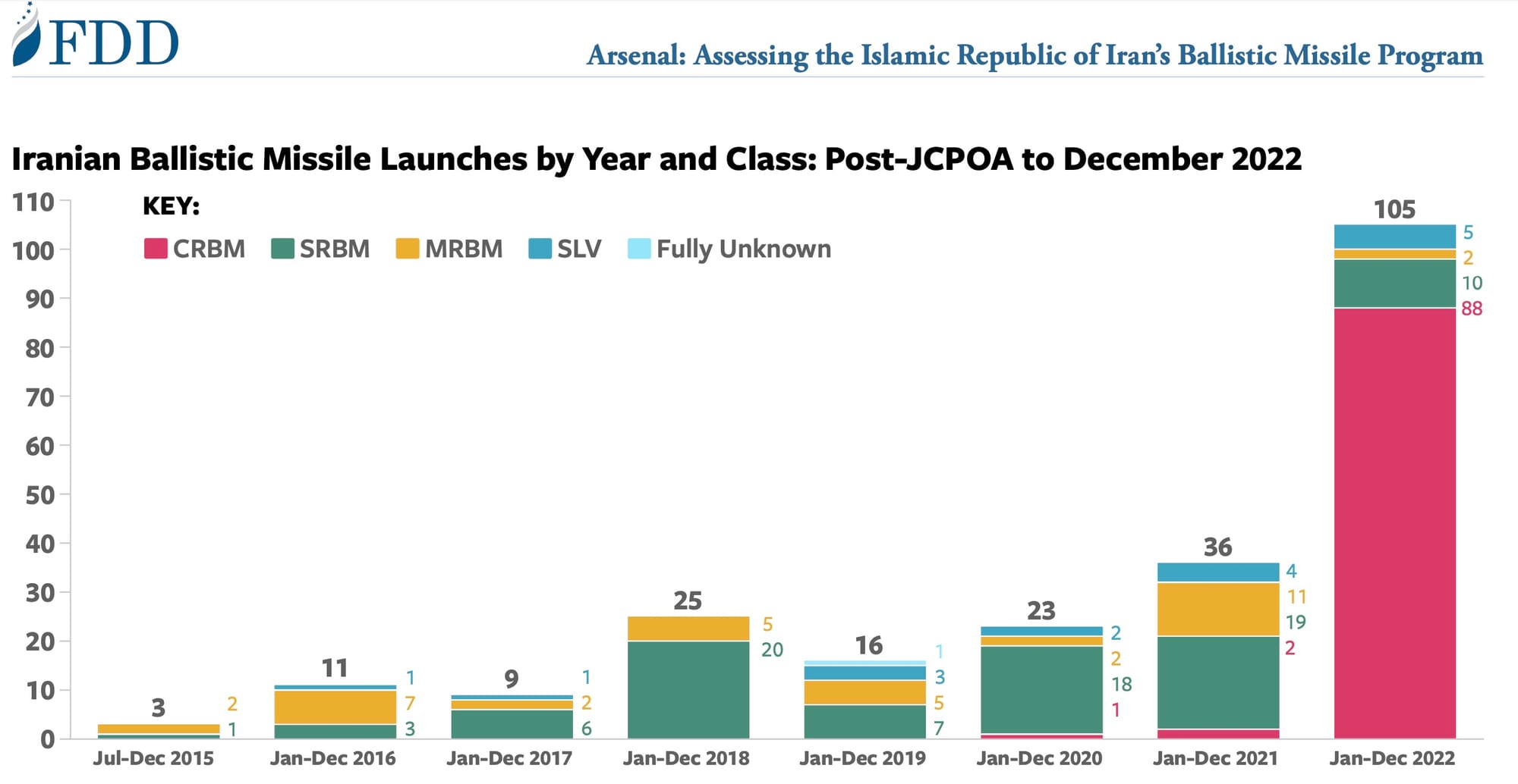 On one hand, Iran was obviously ready for the Battle of Al Aqsa Flood. I doubt they knew the exact date of the October 7th ghetto uprising, but they knew this day was coming and were ready for it. The tunnels have been dug for decades, the rockets have been stockpiled, and the whole Axis of Resistance has been talking about it. This is from a hostile source, but you can see the spike in testing of Close-Range Ballistic Missiles (CRMB) up to Space Launch Vehicles (SLV) in 2022. The Al Aqsa Flood was coming, and some people built arks.
