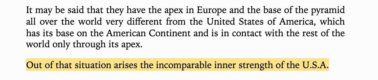What Hitler was most covetous of was A) the racial unity of American state and B) their seemingly inexhaustible lebensraum. Living space. For other people, of course, it meant death. And so that is the great existential challenge America faces today. They ran out of lebensraum decades ago. Their racial unity has also fallen apart. Everything the country was actually founded on is coming apart.