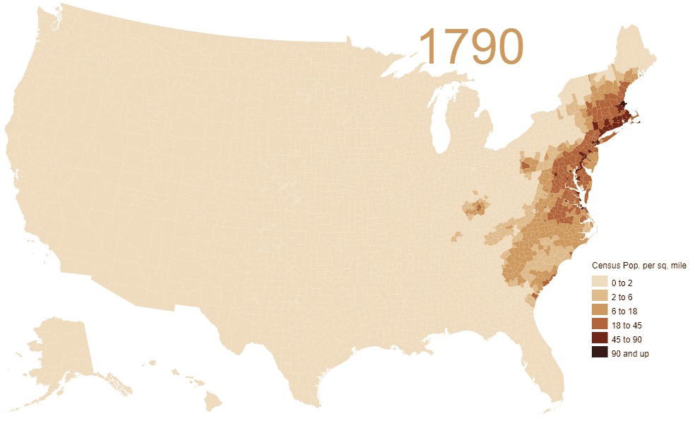 If you watch the map above, you'll see that some parts of the map remain less dense. The West, just before the Rockie Mountains. It's one of those effective global deserts. People don't live there. It's very difficult to survive.