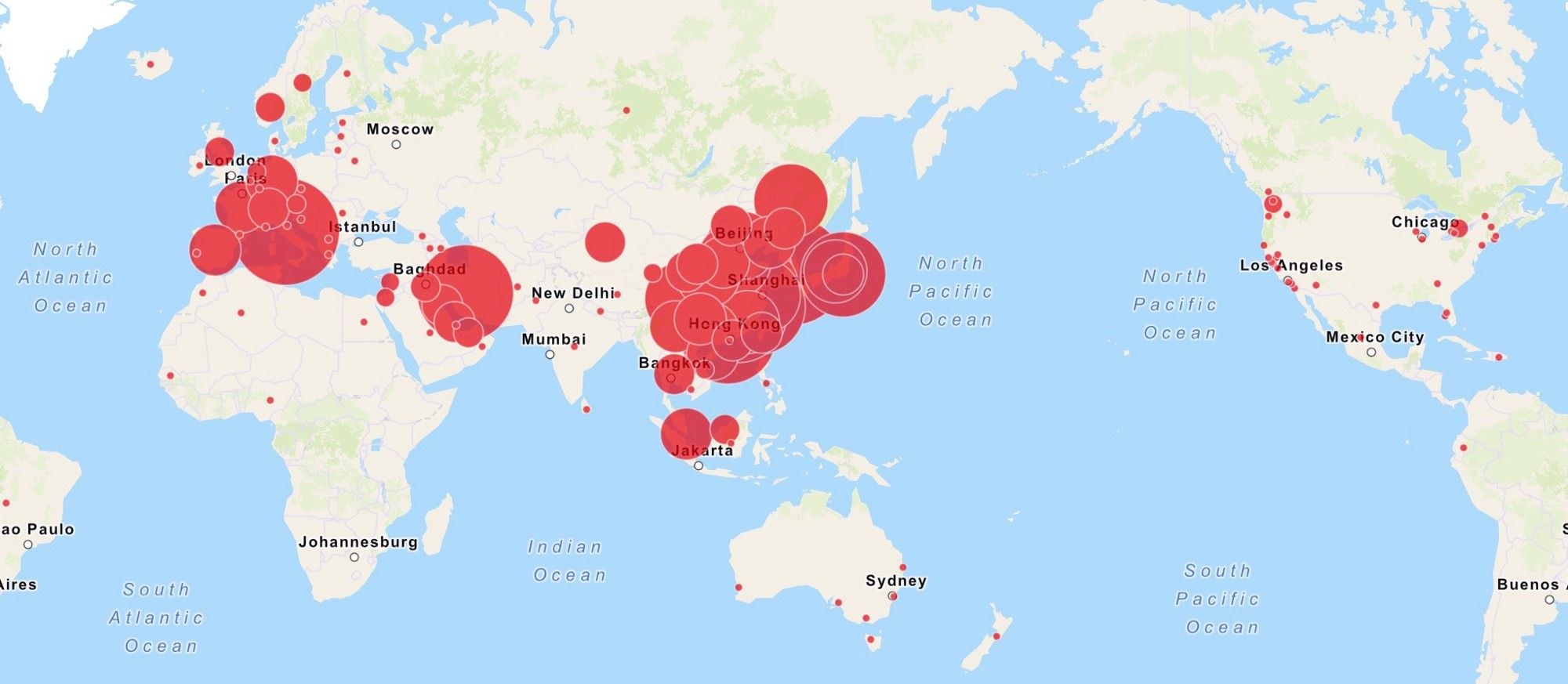 Given Wuhan’s transport hub status and population movement during the Chinese New Year (chunyun), infected individuals quickly spread throughout the country, and were particularly concentrated in cities with the highest volume of traffic with Wuhan. (WHO China Report)