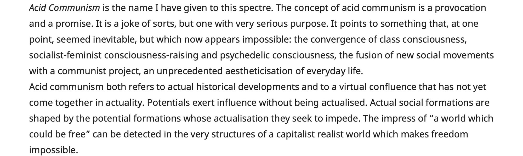Fisher said that a spectre haunts the world, the spectre of Acid Communism.