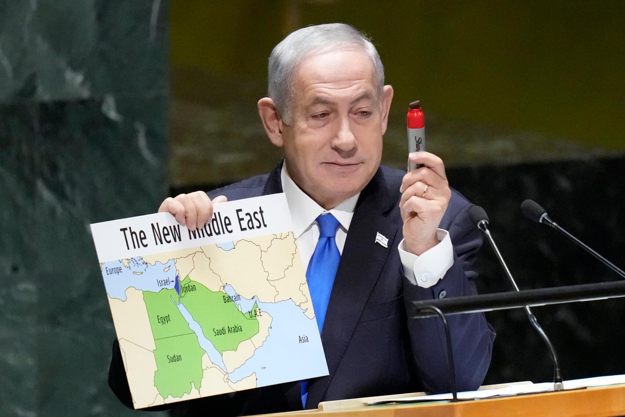 I have gone through thousands of words, but this picture will do. This is 'Israel's' Prime Monster Benjamin Netanyahu (née Mileikowsky) showing a map of the Middle East, quite visibly divided. He actually drew a line down the middle in red marker at the UN. Does it get any clearer? This is the point and purpose of 'Israel'. Divide and conquer.