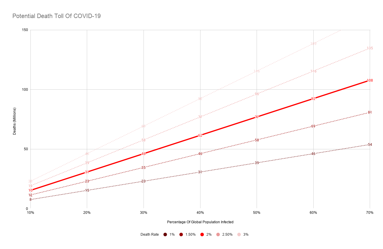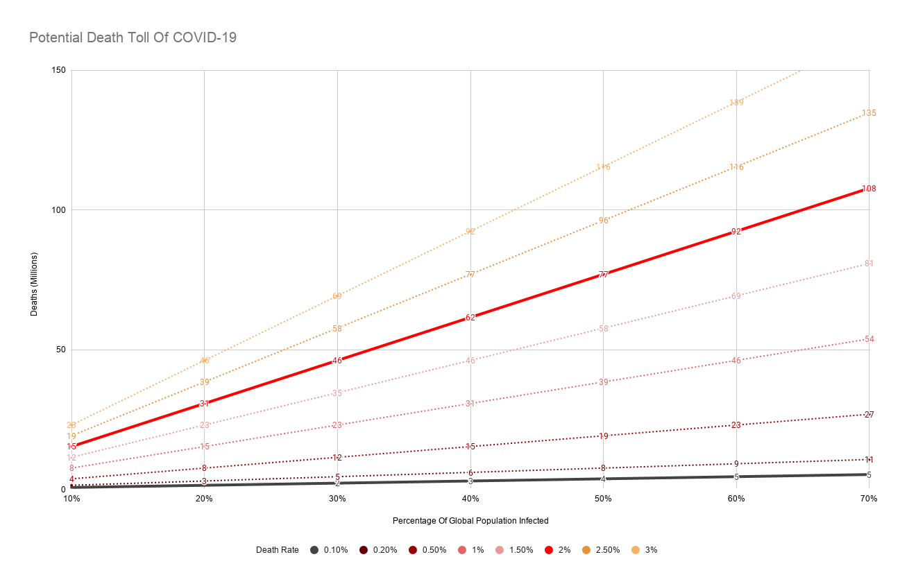 If the death-rate is 2%, we’re looking at nearly 92 million dead. That’s worse than WWI and WWII combined. Essentially, World War III.