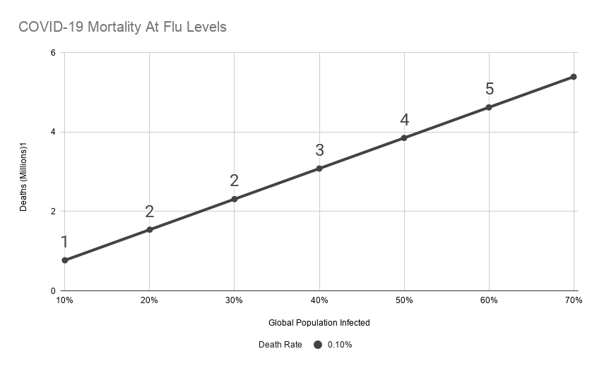 All of these numbers depend on multiplying by some percent of the global population. What if we just keep the infection rate below 10%? Then this graph doesn’t matter at all.