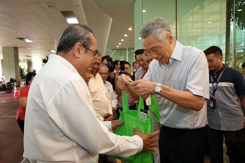 In other images, he is also not masked. While Singaporeans use masks the government distributed four per household, they were not recommended, and that behavior was not modeled.