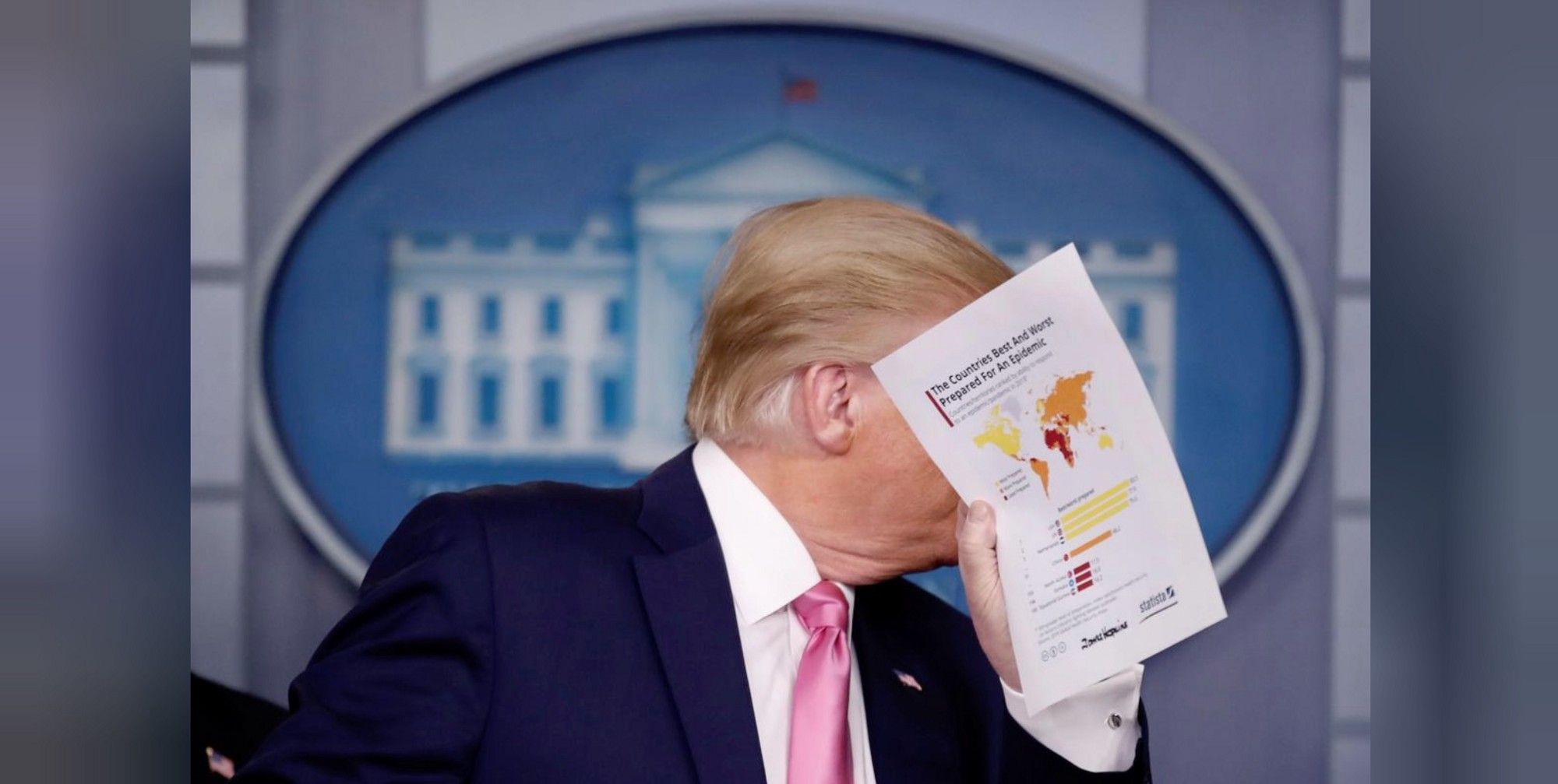On February 26th, Donald Trump held a printed report in front of his face. He was literally defending himself with paper.
