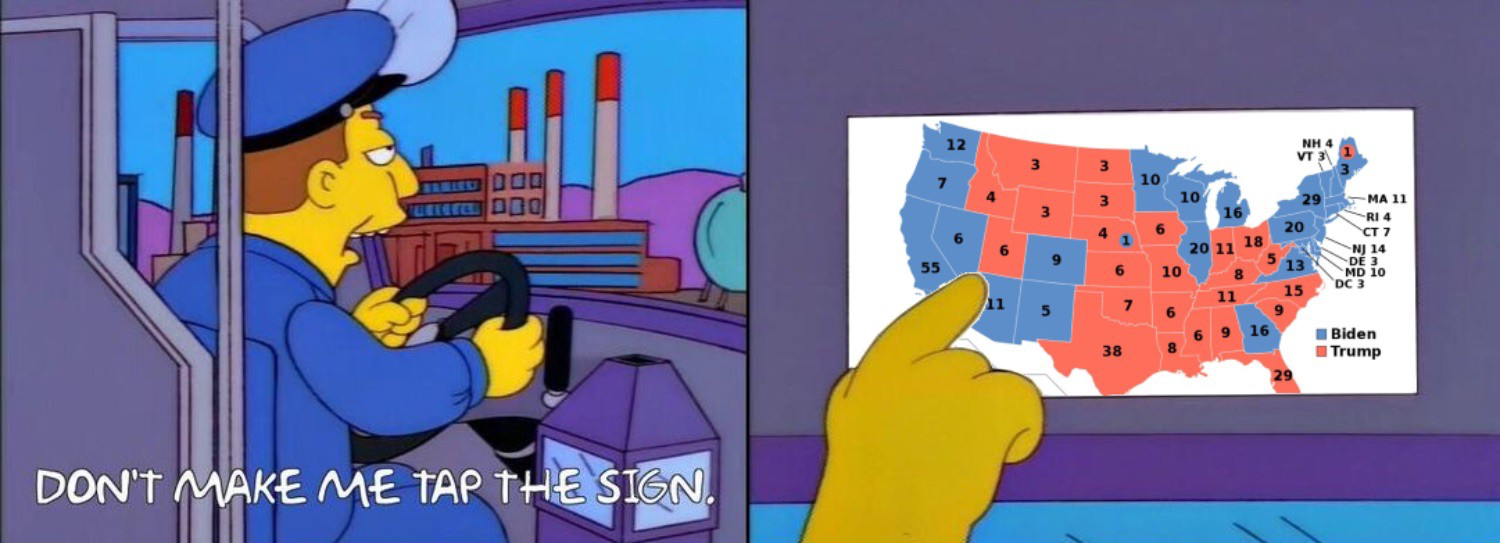 It’s all just a bunch of elites who are supposed representing states and who are actually paid by corporations. Of course the people’s will isn’t done. It’s not that American democracy is broken and not working correctly. America was founded by a bunch of rich white men who didn’t want to pay taxes, didn’t want ordinary people to vote, and certainly didn’t want minorities doing anything. And so it remains. The thing works perfectly well. It’s just not a democracy.