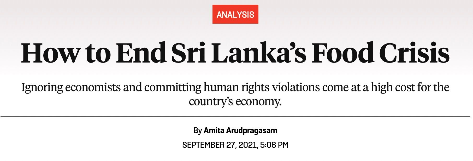 Foreign Policy completely dismisses almost everyone in Sri Lanka because some distant economists have the answer, but they can't even remember the question. We were talking about how to end a food crisis, and they're talking about growing less food. It's nonsense.