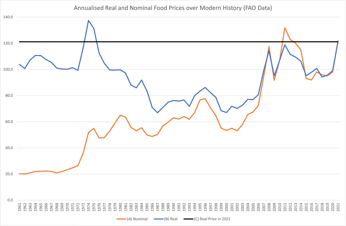 Global food prices are the highest they've been since... the 1970s. The article says "Fifty years ago, Sri Lankan policymakers were also concerned about excessive international dependence—but understandably so." But they somehow can't understand a similar response to similar circumstances today.