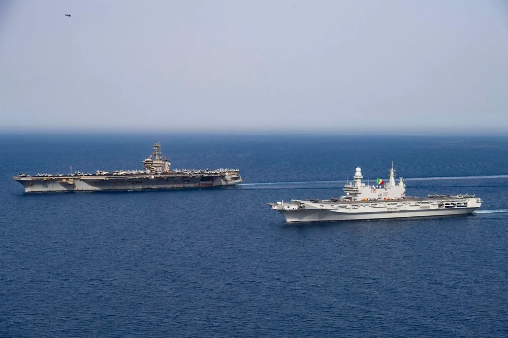 It's increasingly obvious that America's naval empire has no clothes because Yemen pulled off its fig leaf, the USS Eisenhower. The Eisenhower recently fled the fuck away from Yemen (we'll get to that) and you can see it here doing exercises with the Italian ship ITS Cavour. As you can see next to its Italian friend, the Eisenhower looks like shit. The rust pattern on its port hull even looks like an inverted Yemeni flag, lol. The most iron of ironies.