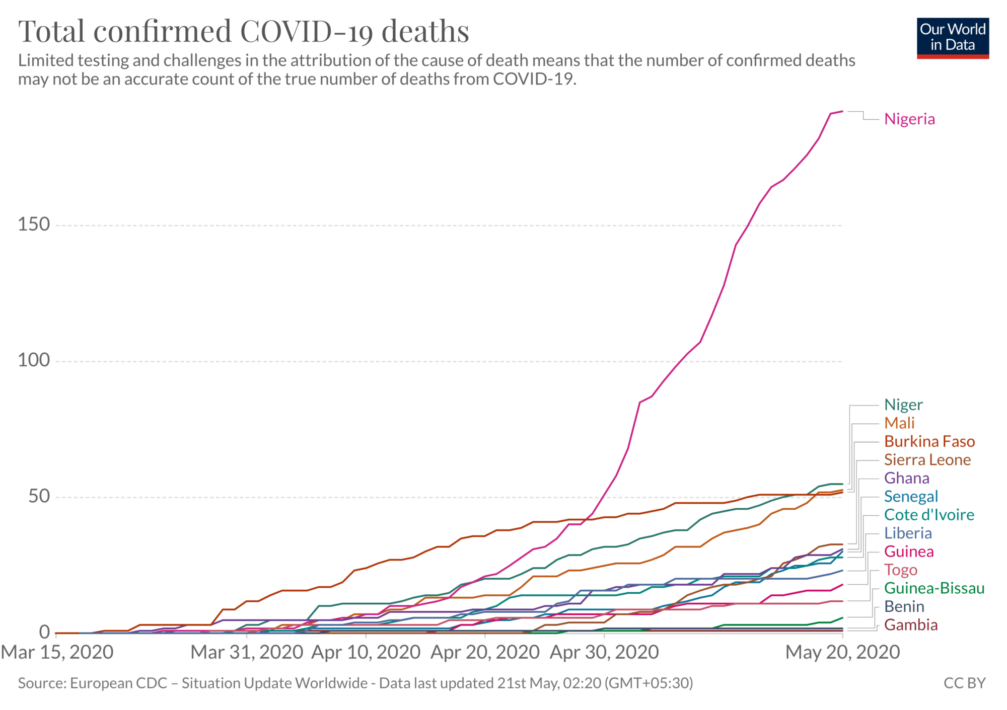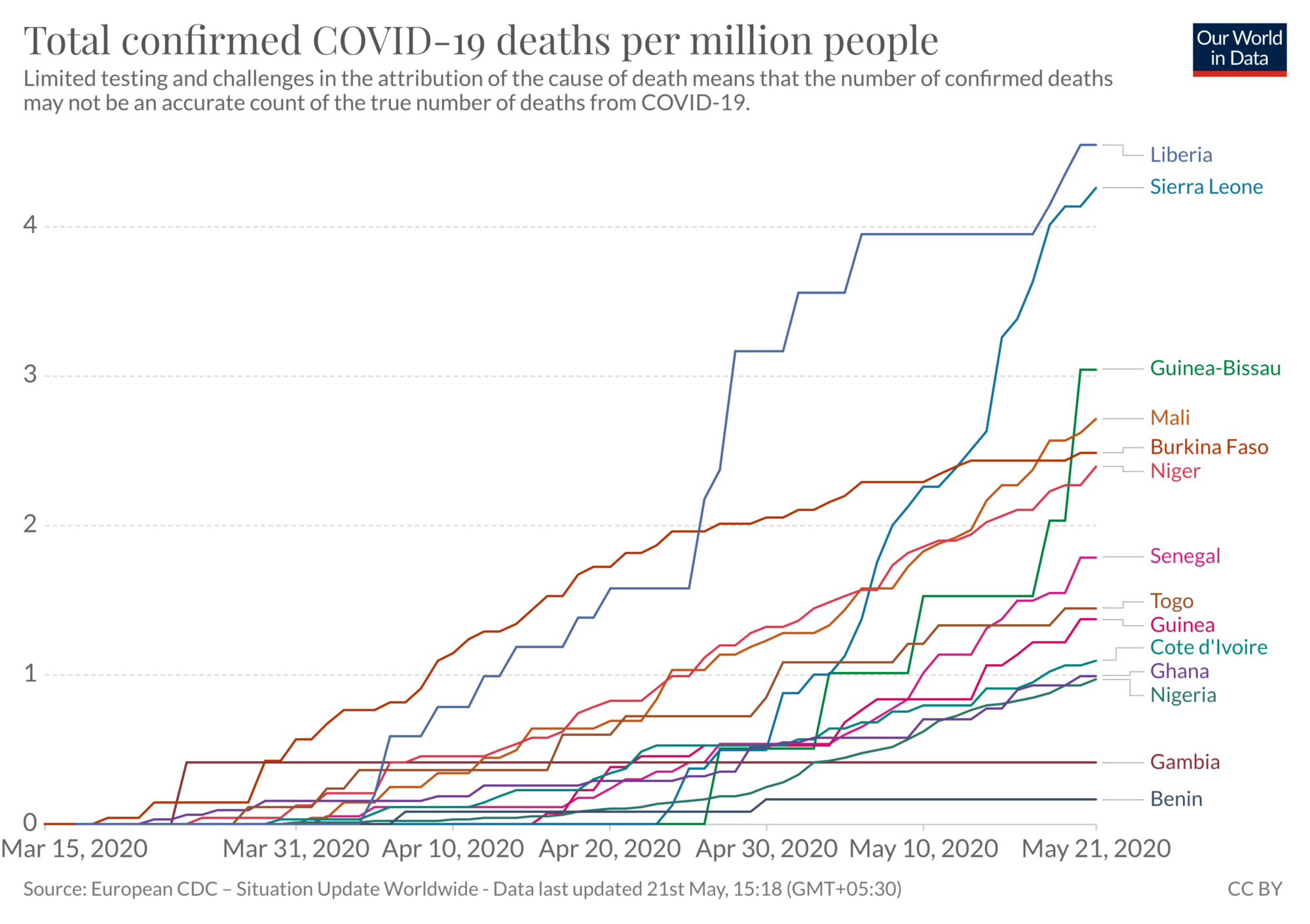 To play with this data yourself, just go to OurWorldInData. I’ve preloaded the link with all the West African nations.