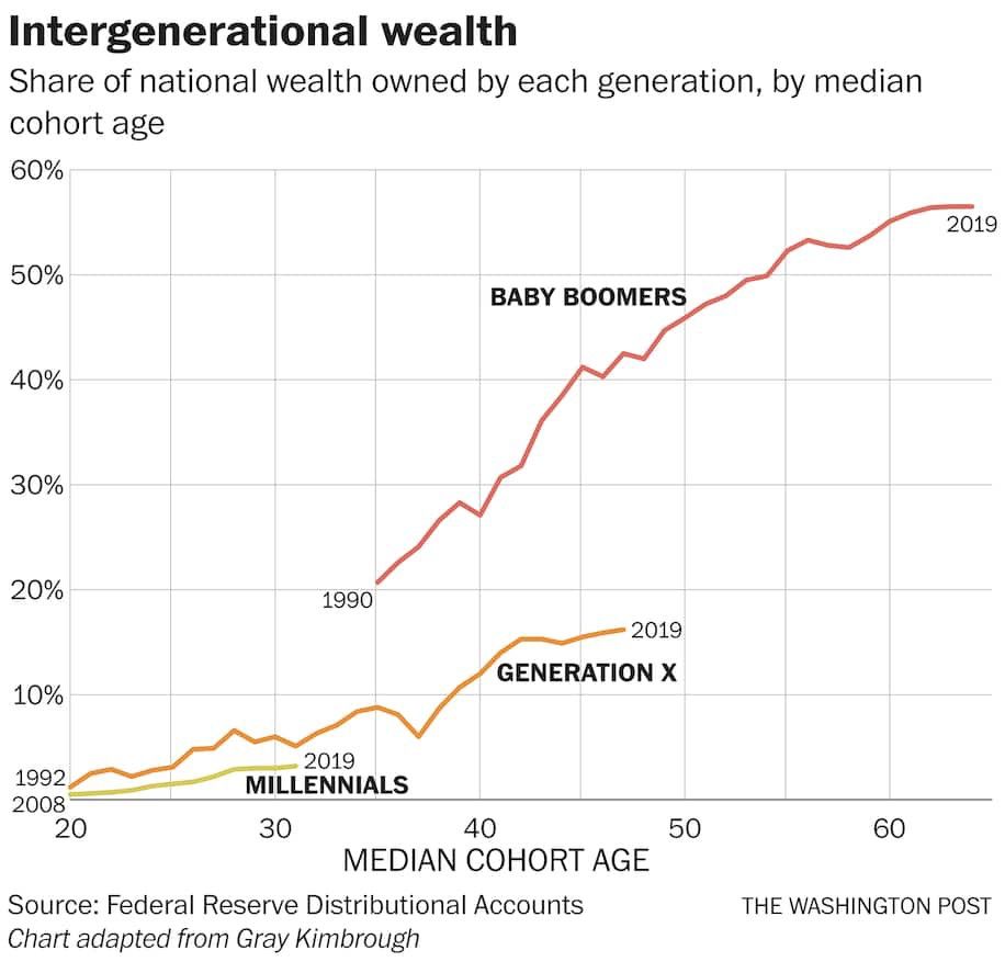 Forget the economic climate, there’s barely a climate climate. American boomers haven’t just robbed my generation, they’ve robbed every single generation to come. My entire lifetime has been a wholesale transfer of over $50 trillion in wealth from the young and poor to the old and rich.