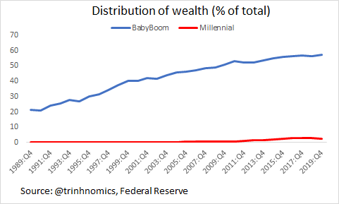 The truth is that, structurally, I had no hope of a better life than my parents. Millennials don’t have shit and never will have shit. Here’s one graph from @Trihnomics, all the graphs are bad: