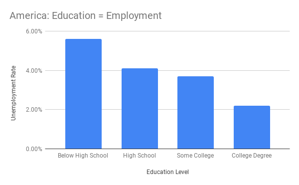 The higher the education level, the lower the unemployment rate, and the higher the wages. That’s the point.
