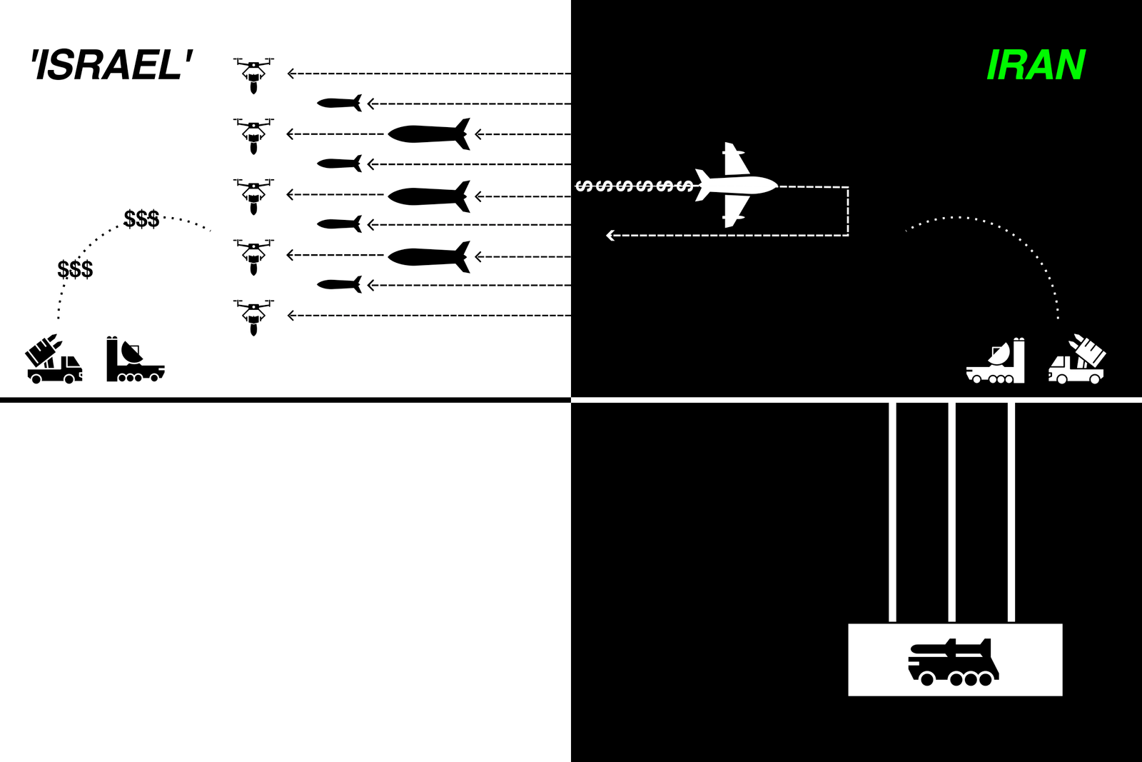 The other big strategic difference is that Empire's model is vertical (dropping bombs down on poor people) and Iran's is horizontal (firing smart missiles across). As we've discussed, these are very different propositions, and Iran has the technological advantage both in quantity and quality. As well as basic home-field advantage.