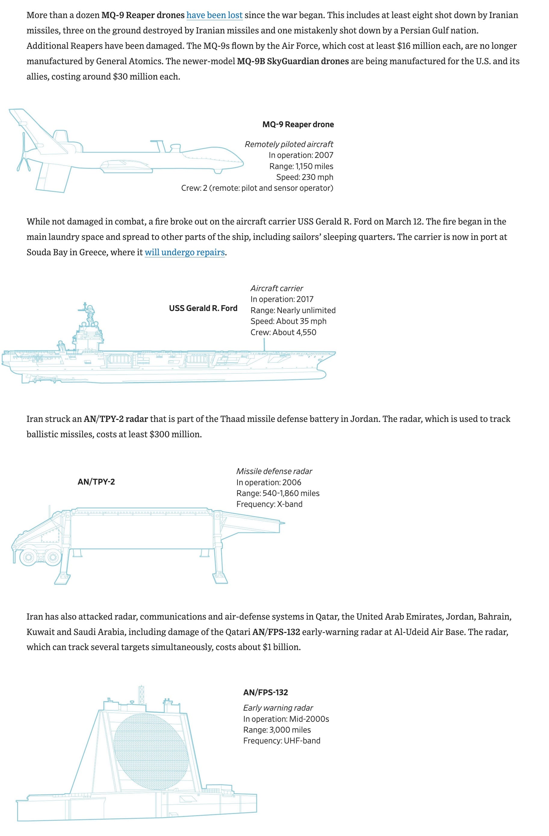 The readiness rate of 'America's' antiquated fleet (how often equipment can be used without breaking down) is bad in the best of times, and these are the worst of times, where they have nowhere to land and do maintenance. 'America's' problems compound the longer this goes on, and Iran just has to hang around. This level of attrition is not a winning proposition, according to the Empire's own calculations.