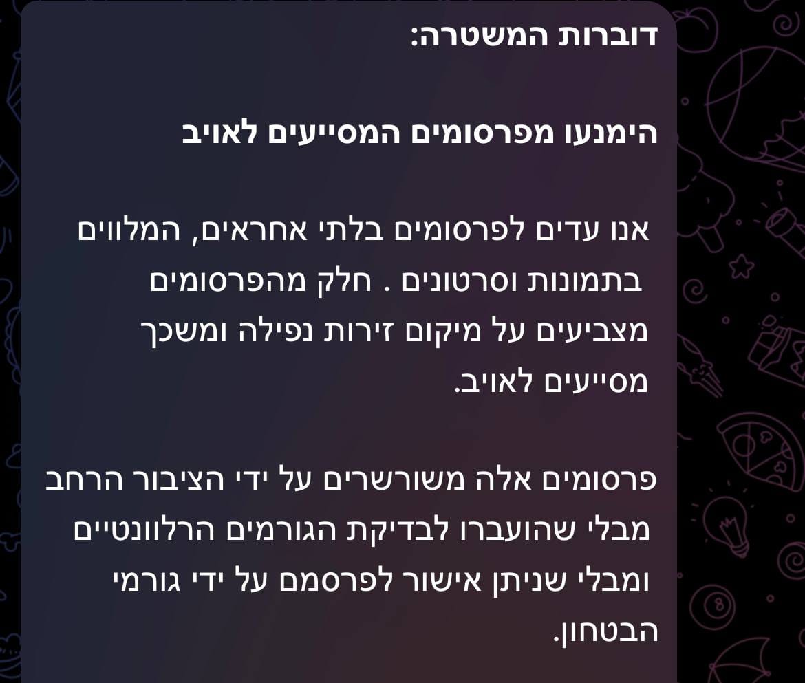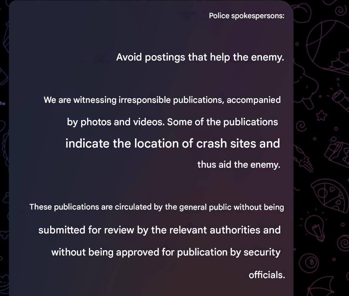 'Israeli' police spokeswoman saying stop posting the places getting hit, because the enemy might know the locations of the places they already hit