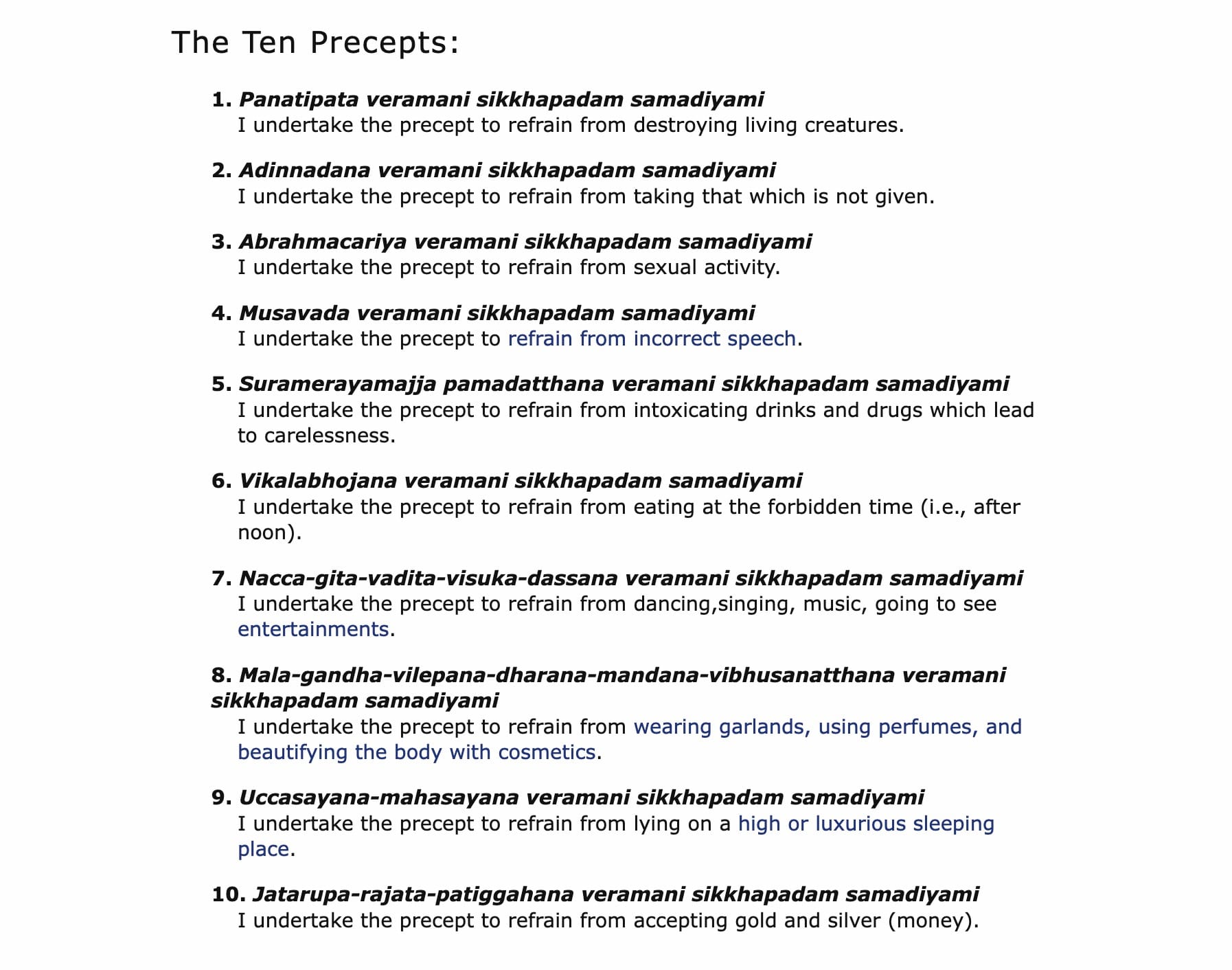 The 10 Precepts (Dasa-Sila)