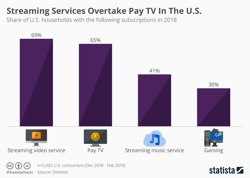 Over the next 12 months, Disney, Apple, WarnerMedia, NBCU and others are joining Hulu, Amazon, BBC, Hotstar, YouTube, Netflix, and many others in offering streaming entertainment. The competition for winning consumers’ relaxation time is fierce for all companies and great for consumers. (Hastings)
