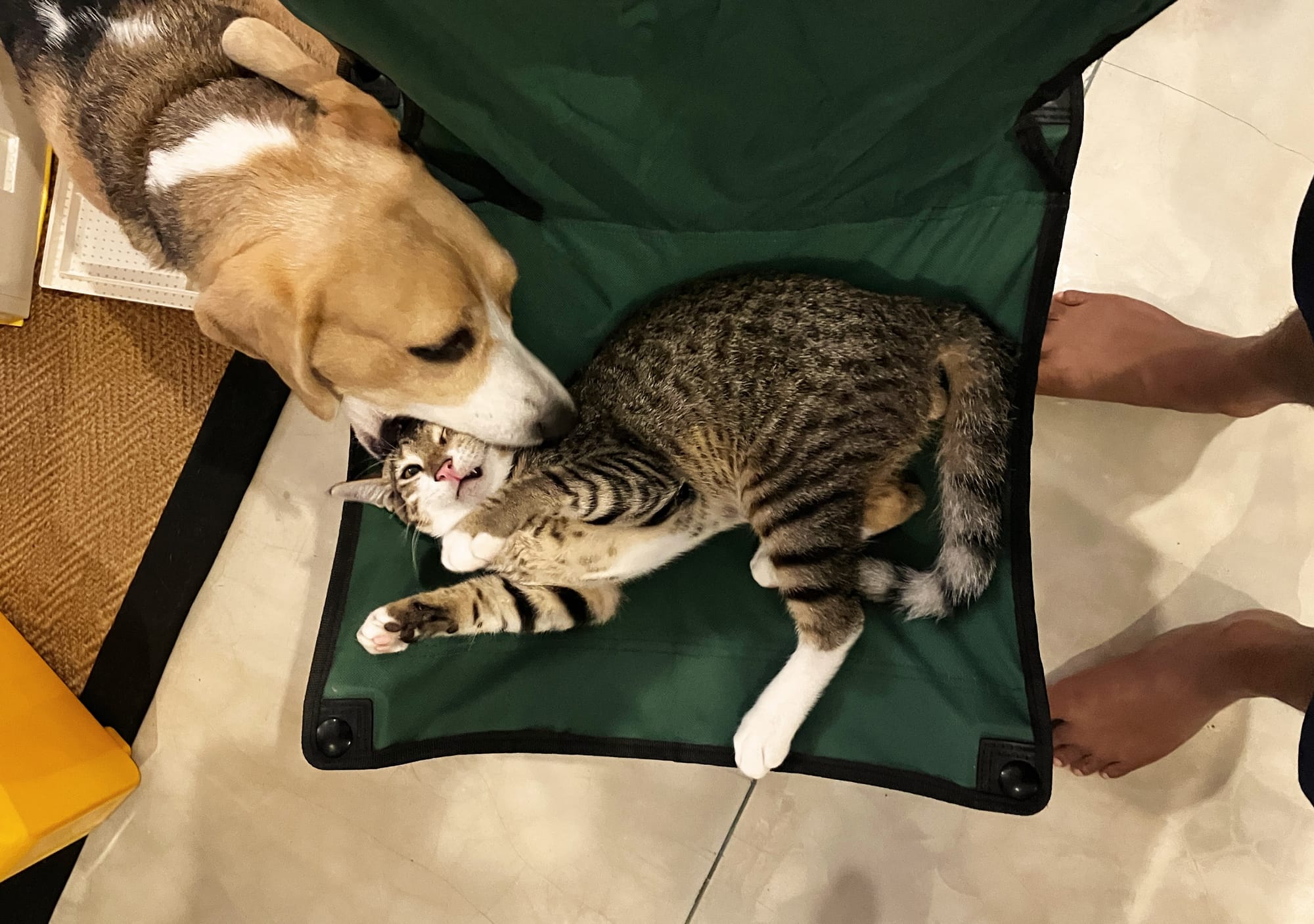 This month I've been observing Ramadan, which means praying five times a day. As I prostrate, the dog comes to sniff my face and then the cat pounces on the dog and then they're all over the place. They're annoying but it also tells me something. To humble yourself before Allah is to humble yourself before all creation. You're literally on the ground with them. This is a lesson we all could use these days.