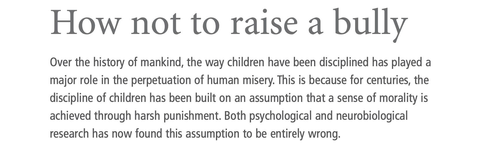 As Margot Sunderland writes in The Science Of Parenting (2006), harsh punishment really fucks up your kids, who then go on to fuck up society.