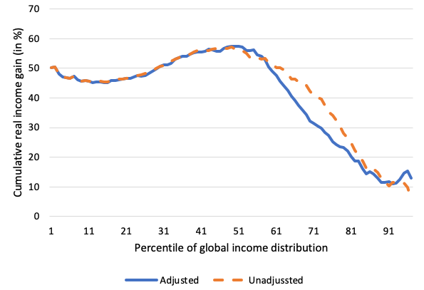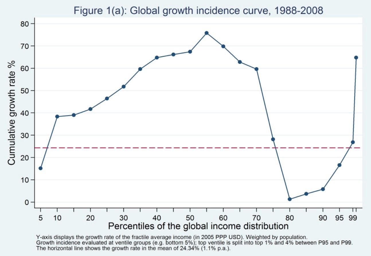 Branko Milanovic has been looking at global incomes for years. In 2012 he published his famous elephant graph, essentially an economic dick pic of the 1%.