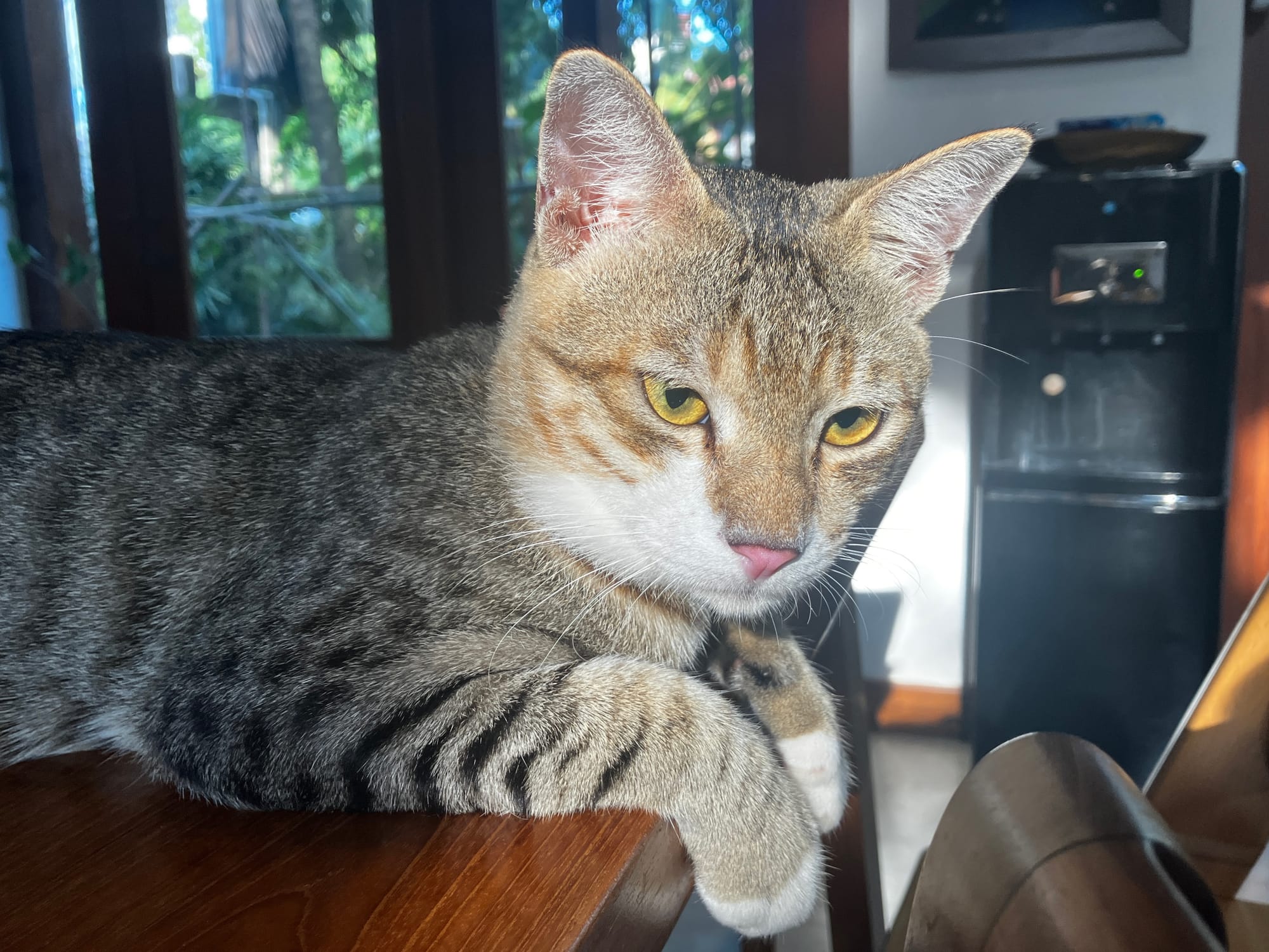 I left a chicken to thaw in the sink, covered with a cutting board, and went to sleep. I wondered why the cat didn't come to bed, but at least nobody was pouncing on my feet. Turns out that the maid had removed the board and the cat was downstairs, having a fancy feast…