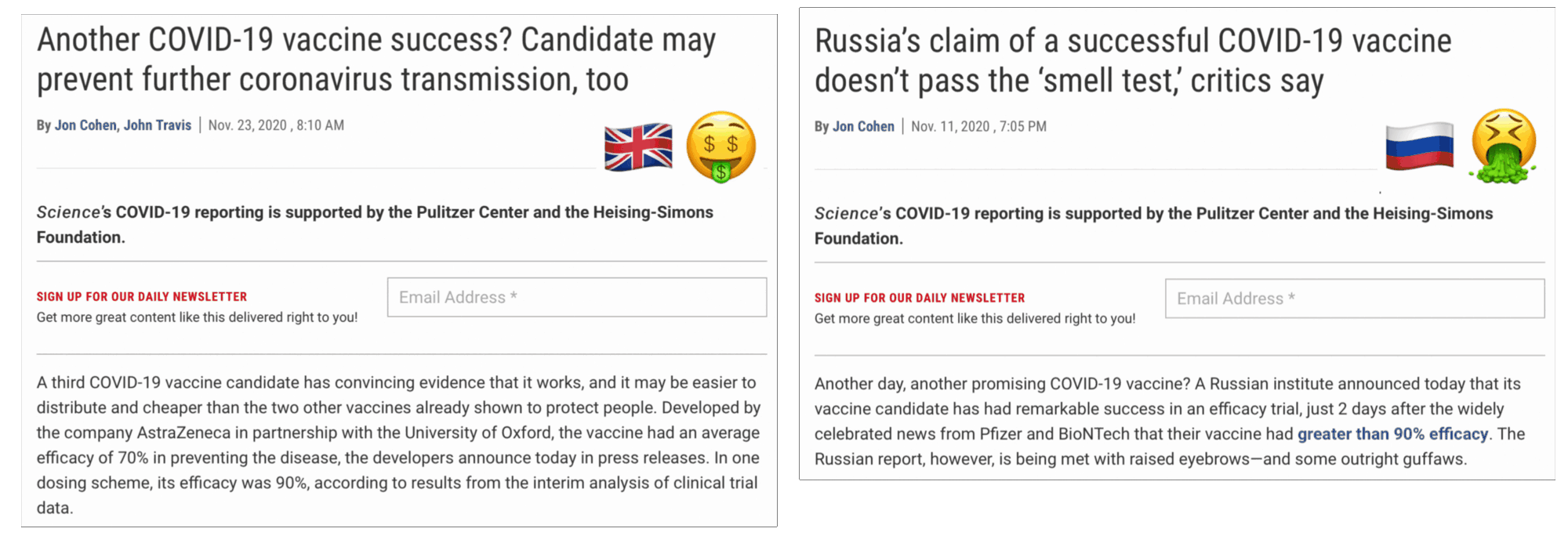 It’s important to note that besides the two-vector thing, this is exactly the same method as Oxford/AstraZeneca. But look how the western press covers it:
